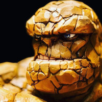 comic books and movies, the Thing from the Fantastic Four. He has the distinctive orange rock-like skin and is known for his gruff personality. This depiction of the character is highly detailed, with