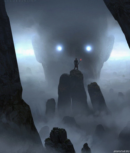 a fantasy scene with an ominous and mysterious atmosphere. In