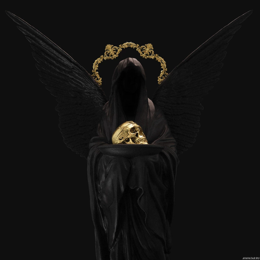 the Grim Reaper, often depicted in art and literature. This character is shown with black wings and
