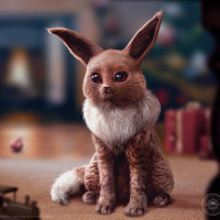 pointed ears characteristic of its species, which are often referred to as "earmuffs" due to their resemblance to human earmuffs. The setting appears to be indoors, possibly during a Christmas season given the presence of
