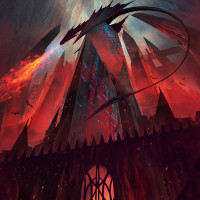 a fantasy setting, possibly from a story or game involving a dragon's presence near a grand fortress.