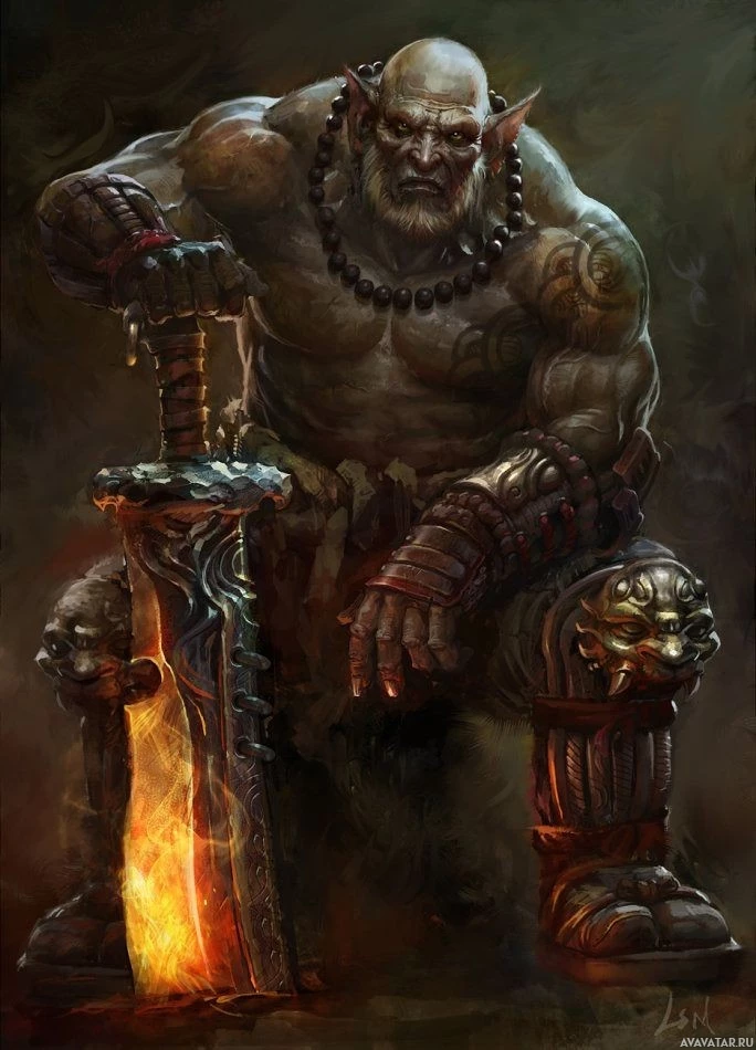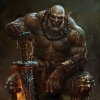 a fantasy character that appears to be an orc. The character is portrayed with exaggerated features typical of orcs in fantasy media, such as