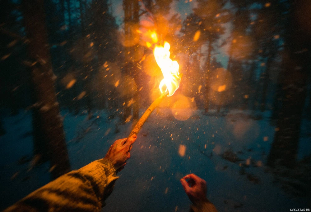 факелы | Скачать аватары с факелом | Torches | Человек, использующий факел, чтобы исследовать лес ночью