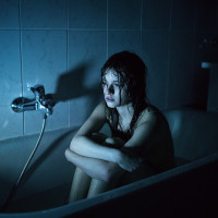 the tiled walls and the presence of the bathtub faucet. There's no other person visible in the image.