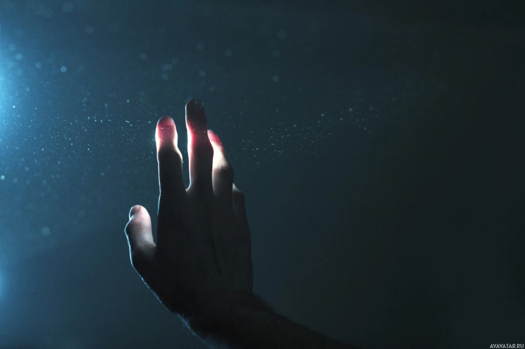 Картинка показывает руку, протягивающуюся к тому, что кажется звездой или светом в темном небе. Это также может быть интерпретировано как цифровая рука, появляющаяся из отражающей поверхности, возможно, воды или льда.