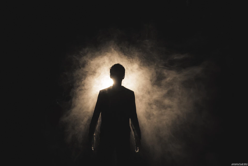 На картинке изображен силуэт человека, стоящего с вытянутыми руками, словно находящегося в движении или выступающего. Они, кажется, окружены дымом или паром, который исходит из-под них, создавая впечатление драматического или интенсивного исполнения. Фон довольно тёмный, подчёркивающий силуэт и излучающий его свет.