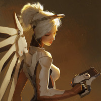 game Overwatch. She is depicted in profile, with her eyes closed and