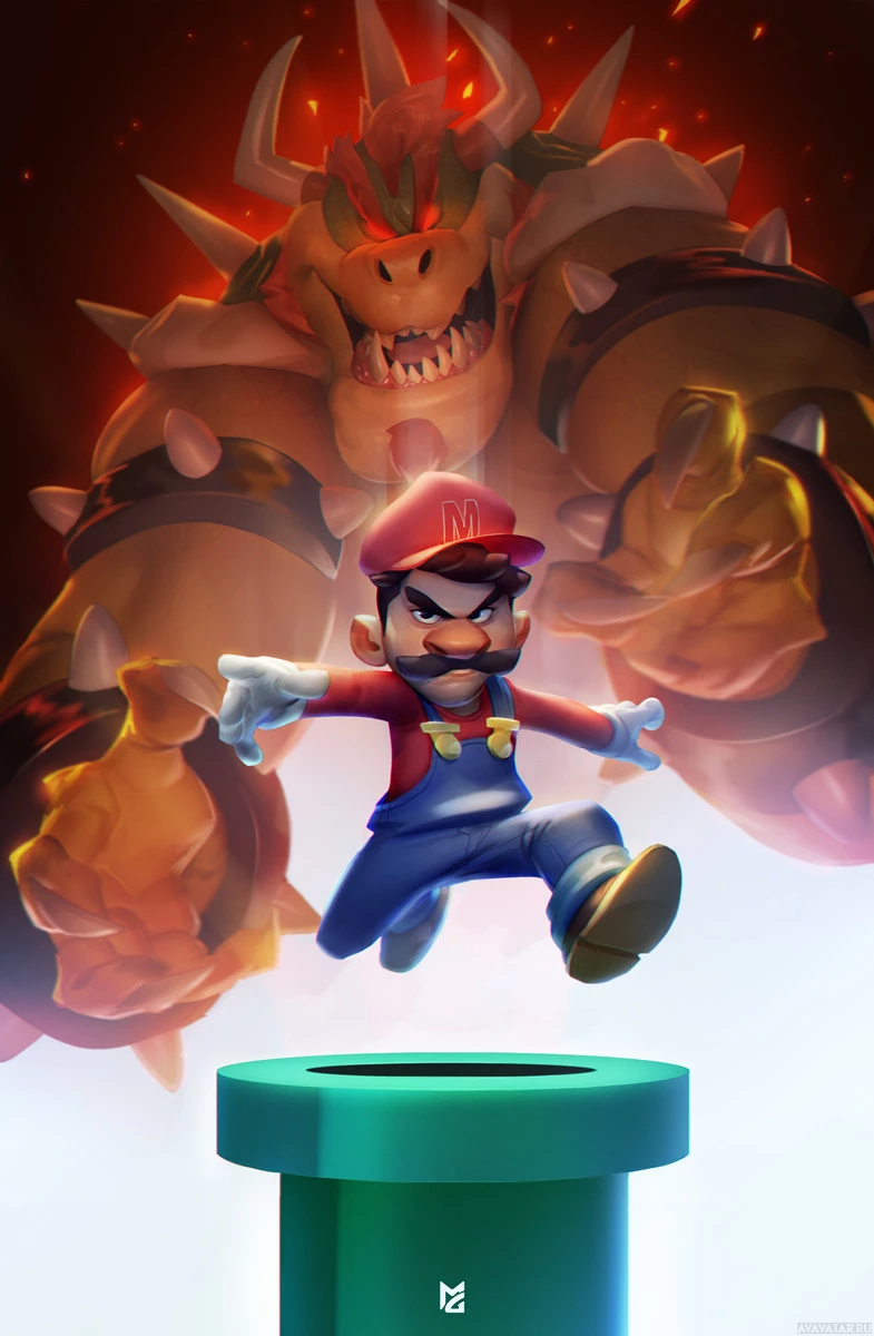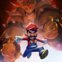 game franchise. He's depicted with his arms spread out and looking angry, which is consistent with his role as Mario's