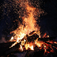 a dynamic effect with light and motion. It looks like a bonfire or campfire, suggesting that this could be a setting for a gathering or celebration in