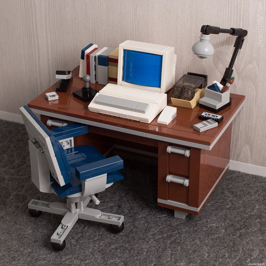 office environment, likely designed to appeal to both children who enjoy building Lego sets and adults who appreciate realistic miniatures.