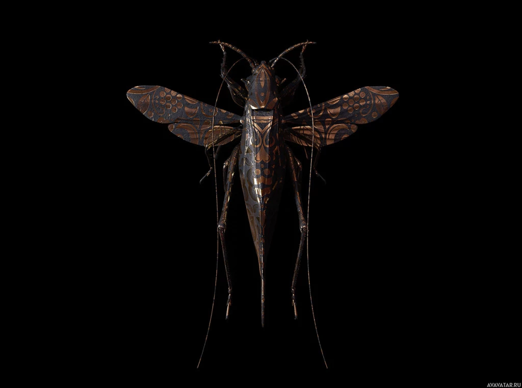Картинка показывает реалистично обработанный кузнечик. Он имеет подробные крылья, антенны и ноги, которые типичны для насекомых, включая сегментированные ноги, которые характерны для кузнечиков. Модель тщательно разработана, чтобы запечатлеть прекрасные черты этого маленького членистоногого.