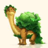 The image shows an illustration of a turtle. It is depicted with anthropomorphic characteristics such as standing upright and having arms, which are not typical for real turtles. The turtle is covered in what appears to be a leafy vegetable or lettuce, giving it the appearance of being a plant-