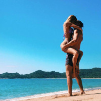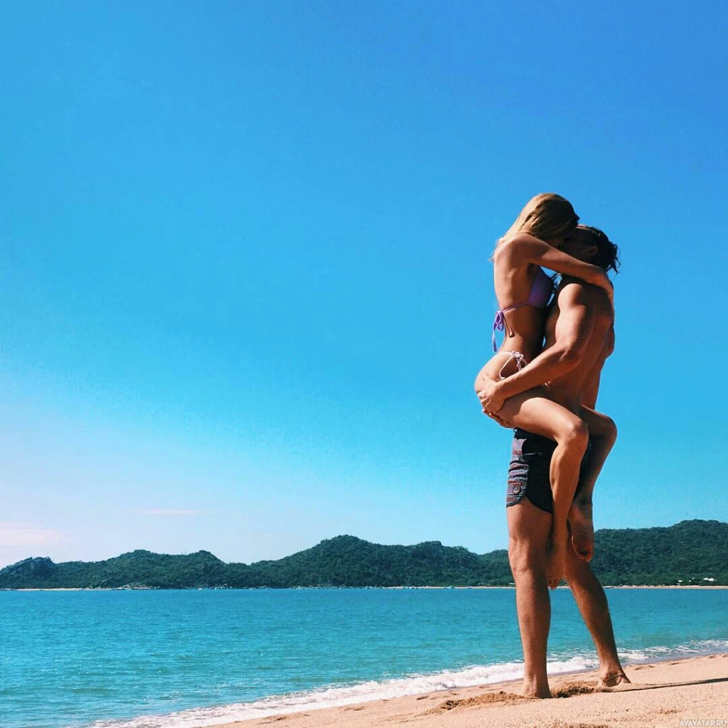 beach environment, which suggests a sense of love and affection between them. The picture captures