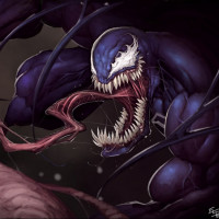 an animated character that is reminiscent of Venom from the Spider-Man comics and films. It's a stylized artwork rather than a photograph or