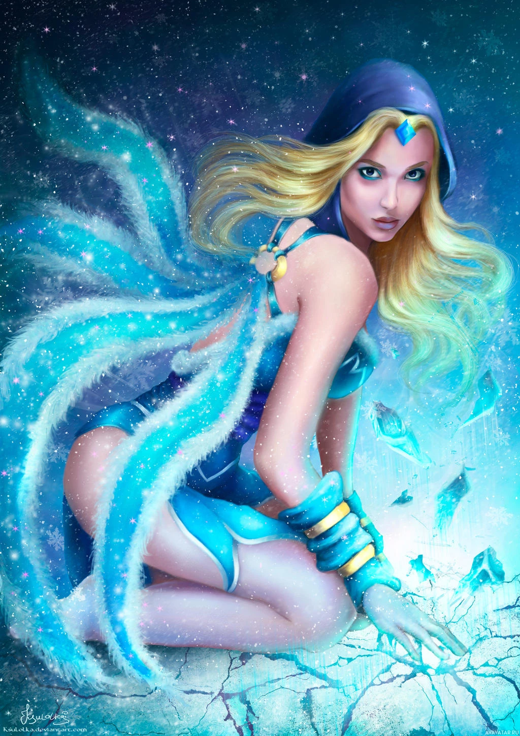 hero in the game, and this artwork represents her with a fantasy-like design. She has long
