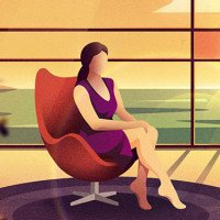 office chair with her legs crossed. She appears to be wearing a sleeveless top and is looking directly at the viewer with