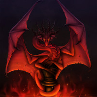 The image depicts a fantasy-themed illustration of a dragon. It has wings and horns, suggesting it is