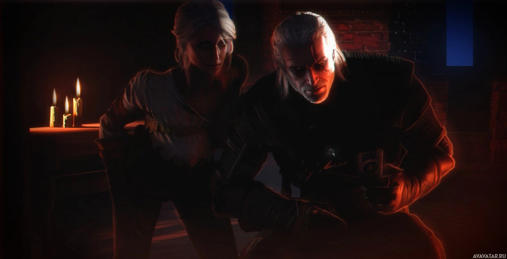 The image appears to show two characters from the "The Witcher 3: Wild Hunt"
