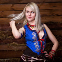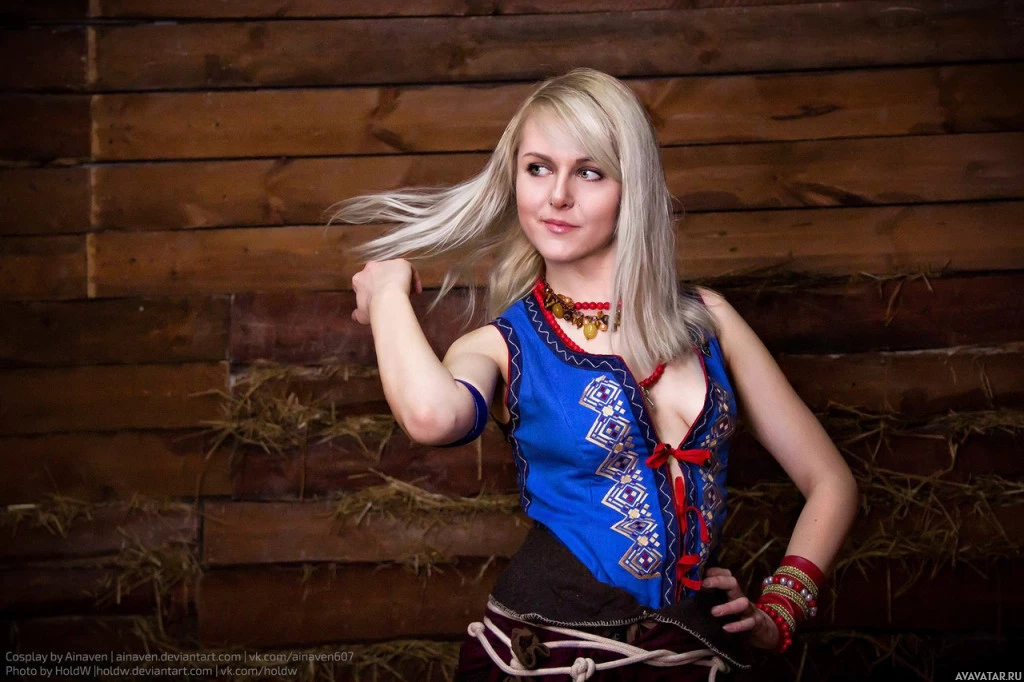 Wild Hunt," which is an action role-playing game developed by CD Projekt. The costume includes elements that seem to be specific to Keira Metz's