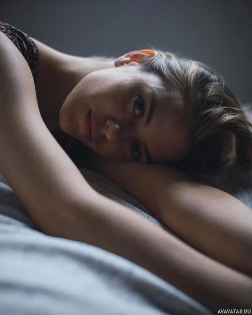 На картинке изображена молодая женщина, лежащая с головой, опирающейся на руку. Она, кажется, смотрит в сторону от камеры и имеет безмятежное выражение на лице. Ее поза расслаблена, предполагая, что она может быть в момент отдыха или созерцания.