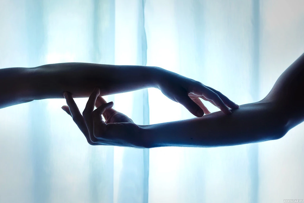 The image depicts two hands close together with their fingers interlocked, giving an impression of unity or connection. The lighting is soft and the background is blurred, which suggests