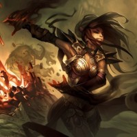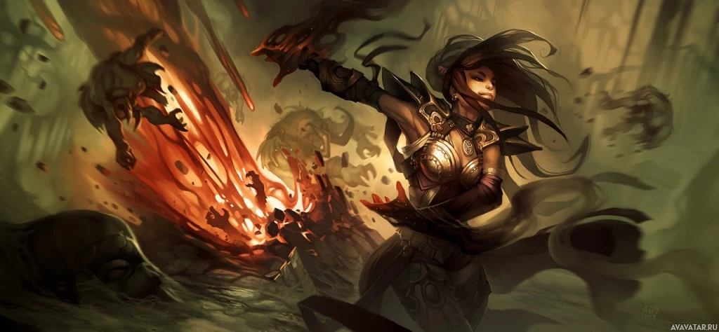 a female character, likely a Sorceress due to her staff and the magical effects around her. She appears to be casting a spell with a fire element that is causing explosions on the ground around her. The setting seems to be a dark and ominous environment, indicative of