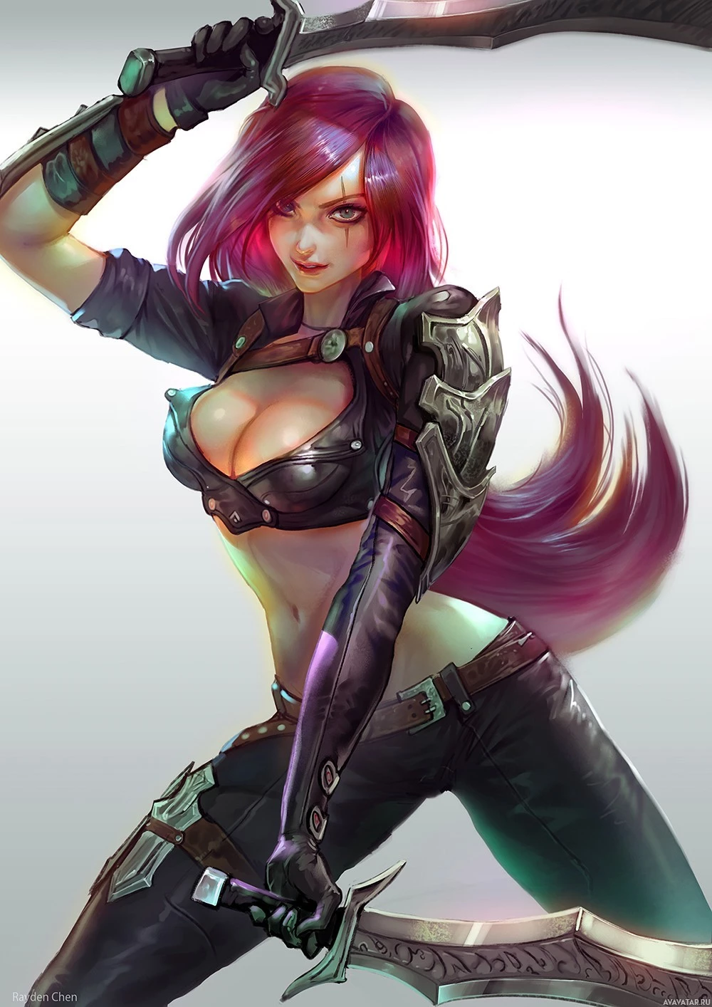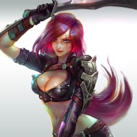 The image features an illustrated character that appears to be Katarina, a champion from the game