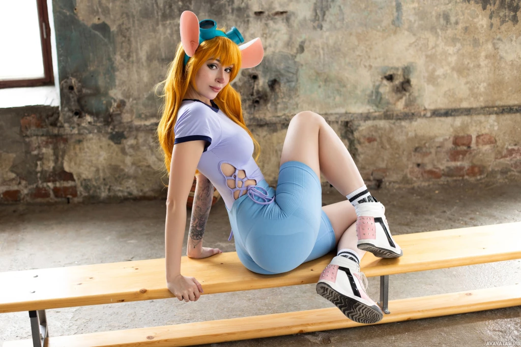 Gadget Hackwrench from "Chip 'n Dale: Rescue Rangers." This cosplay is notable for the individual's
