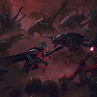 red hue, suggesting intense conflict or battle. There are also multiple other