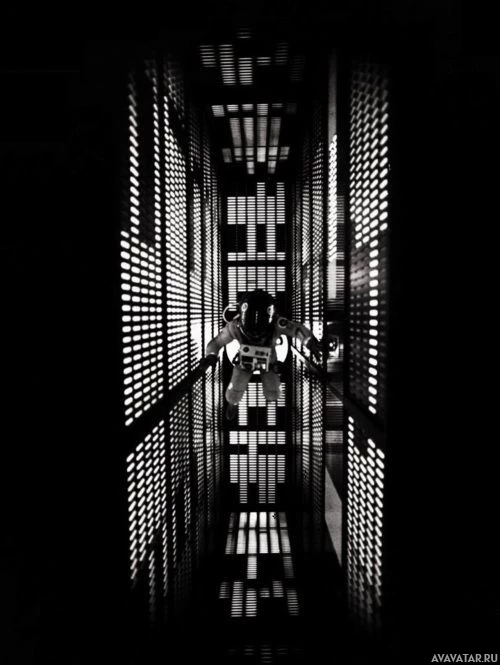 The image shows an astronaut inside what appears to be a spacecraft or space station. The environment is dimly lit, and there are