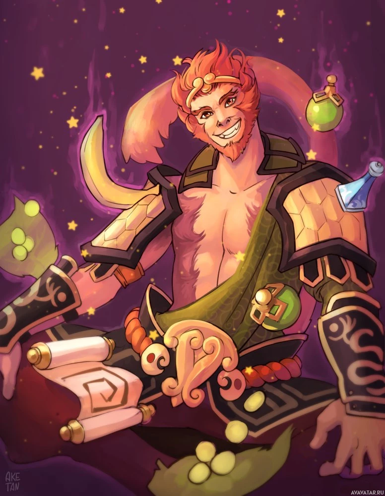 The image depicts an illustration of a character from the game Dota 2. This character is known as Monkey King and is often associated with various attributes, such as being a monkey or having