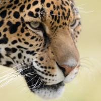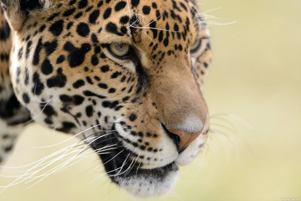На картине изображен леопард, который является животным, известным своим отличительным рисунком шерсти черных розеток на более светлом фоне. Леопард смотрит прямо в камеру с сфокусированным выражением лица.