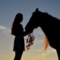 Силуэт девушки и лошади во время заката Больше картинок по схожим темам