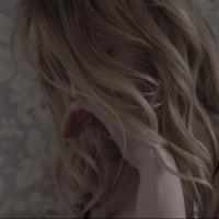 motion blur that has made her face indistinct and eyes closed. Her hands are raised to her face, suggesting she might be experiencing