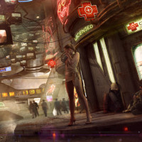 technological setting with high-tech interfaces and screens everywhere. It gives off a vibe of being a cyberpunk or science fiction environment.