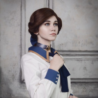The image shows a person dressed in an outfit resembling the attire of a character from the "Bioshock"
