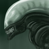 The image depicts an illustration of a character from the "Aliens" movie. It shows the head and upper torso of the creature known as the Alien, which is famously portrayed by actor Paul Reubens in the film series.