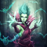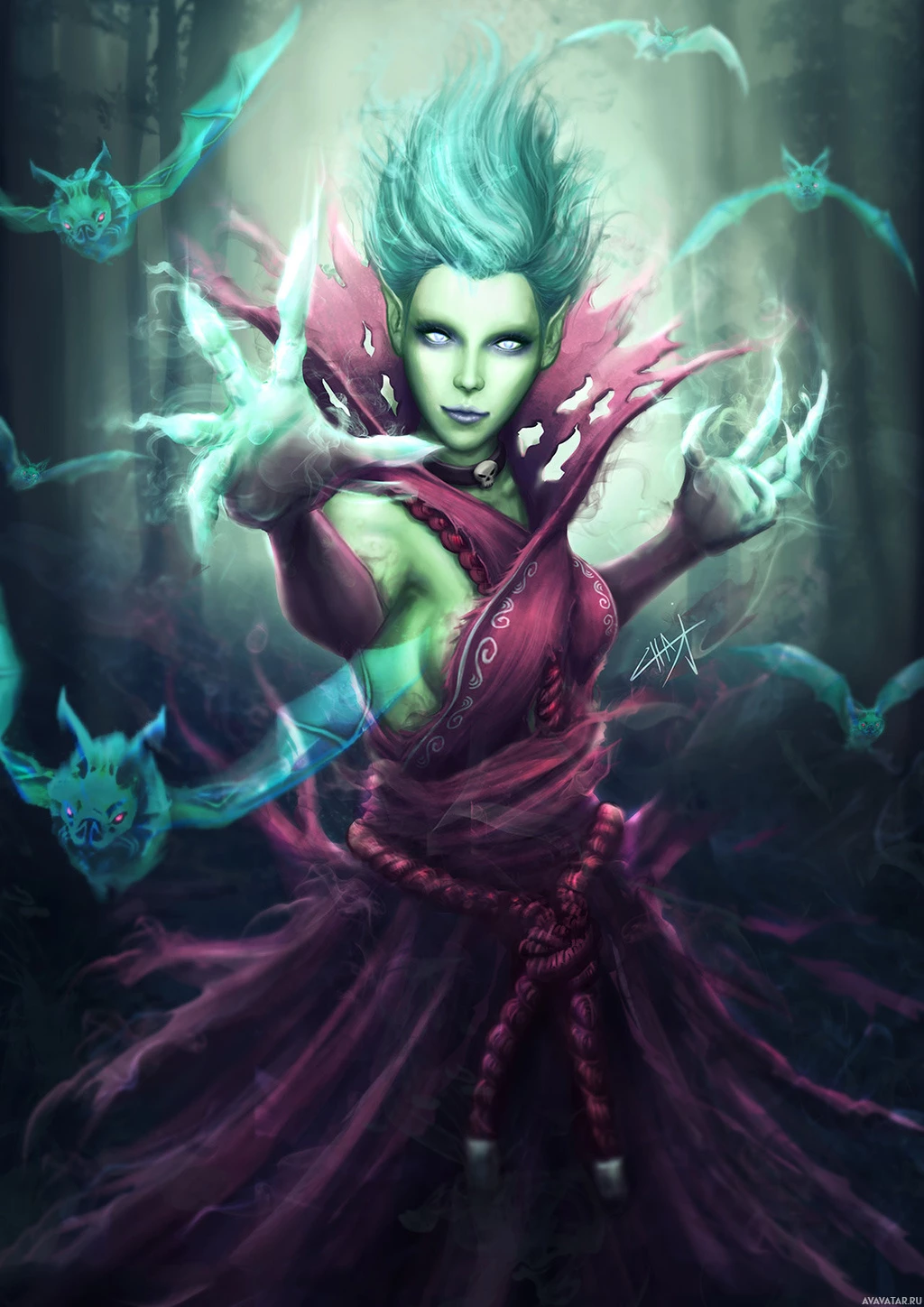 Death Prophet from the game Dota 2. The character is depicted in an artistic and stylized manner, which is common in fan art or promotional materials for