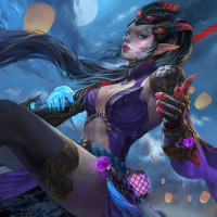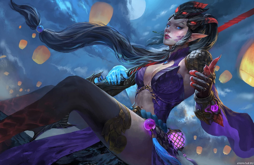 a female character from a fantasy setting. The character is shown in an artistic style with exaggerated features, such as