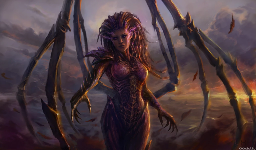 multiple arms, which is characteristic of Kerrigan from the game "Starcraft." She has
