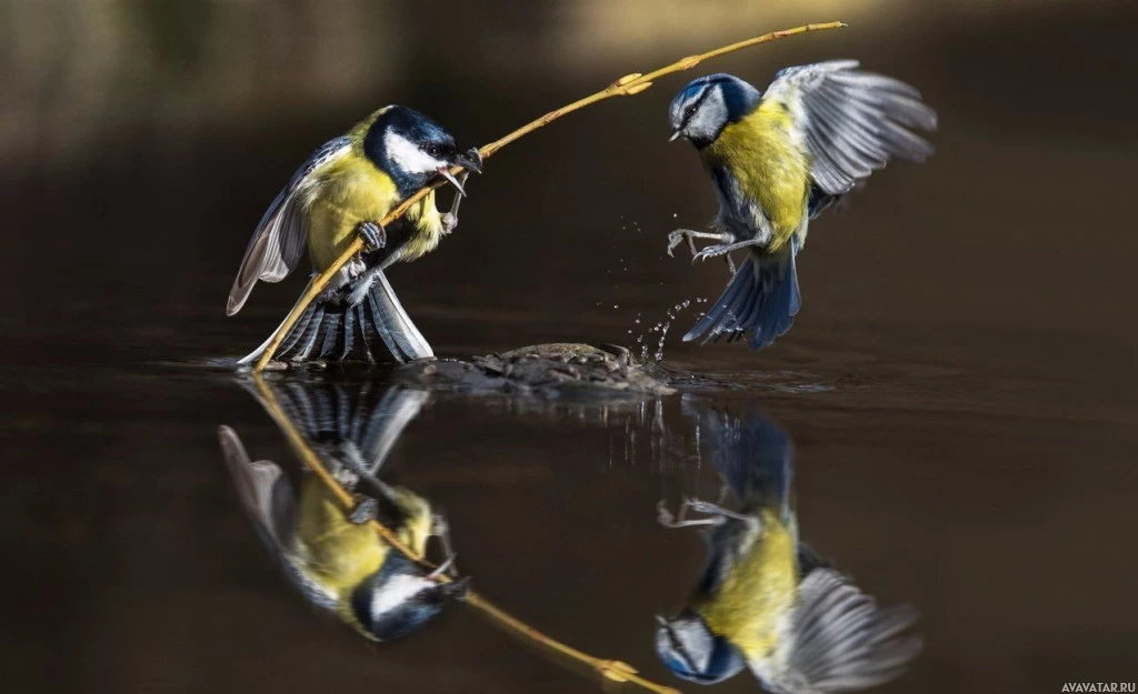 blue tits. One bird is in
