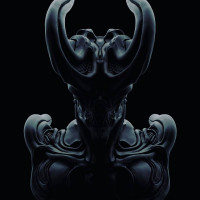 The image depicts a fantasy creature with an intricate, menacing appearance. It resembles a humanoid form but is adorned with horn-like protrusions on the head and arms that give it an otherworldly or monstrous look. The dark color palette enhances its intimidating presence. This creature could be from a fantasy story, game, or artwork where such mythical beings are common.