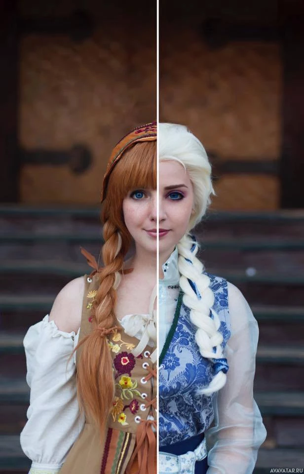 The image shows a person dressed as Elsa, a character from the Disney animated film "Frozen." The individual has