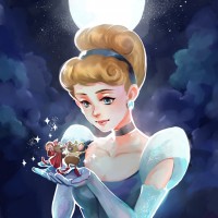 a night sky with stars and a full moon, adding to the fairy-tale atmosphere of the scene.