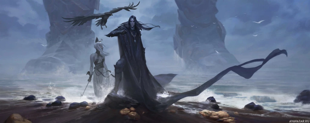 The image appears to be a piece of fantasy artwork, featuring two characters in