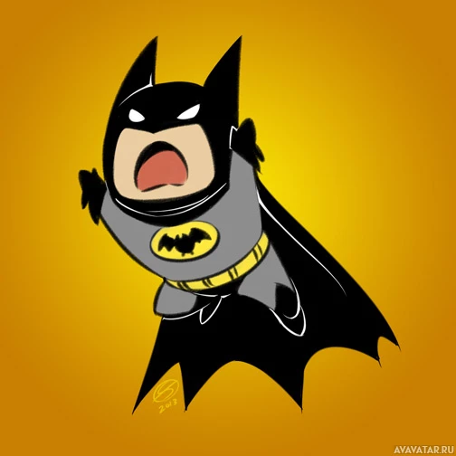The image features an illustration of a character that is designed to look like Batman, a popular comic