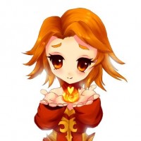 The image shows an illustrated character that appears to be Lina, a popular character from the game "Dota 2." The character is depicted in a stylized and cute form, with red hair and a vibrant costume, which are typical elements of her design within the game.