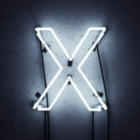 The picture shows a neon sign with the letter "X" on it. It appears to be a large, three-dimensional representation of the letter in bright neon lighting against a dark background.