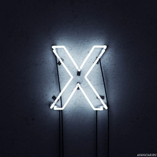 На картинке изображен неоновый знак с буквой «X» на нем. По-видимому, это большое трехмерное изображение буквы в ярком неоновом освещении на темном фоне.