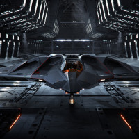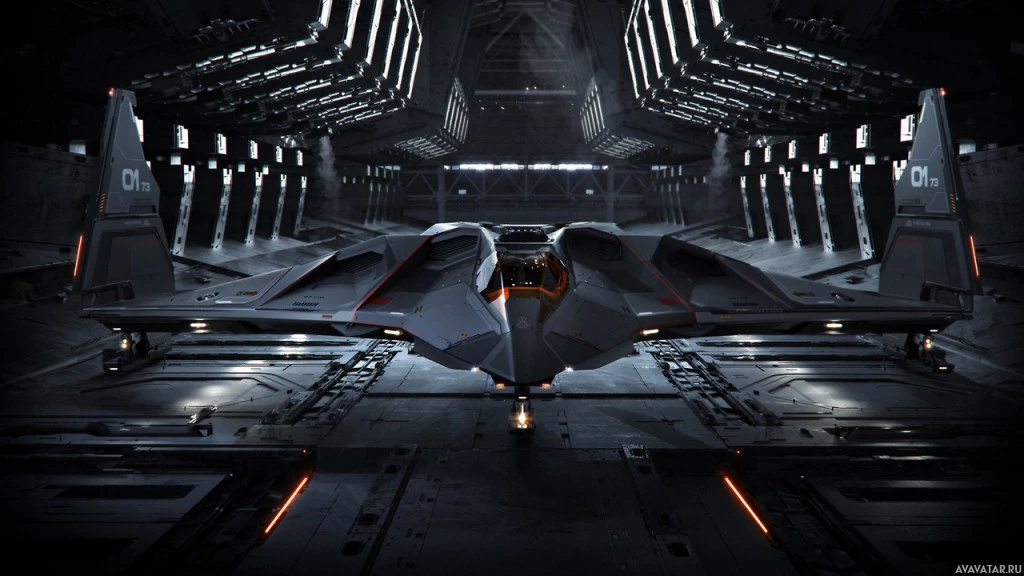 a fighter jet with sleek lines and advanced design features that suggest it's meant for high-speed performance and aerial combat. The background shows what appears to be an underground hangar or garage equipped with various